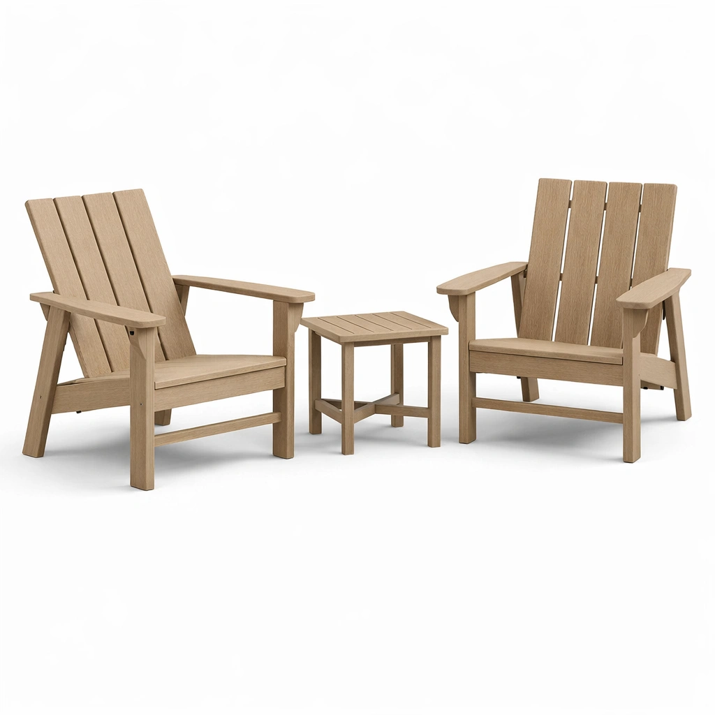 Conjunto de descanso de madera sintética con sillas y mesa de jardín